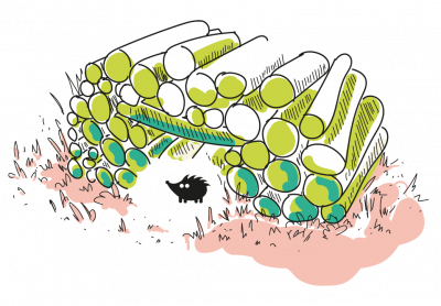 Placez deux bûches parallèles l'une à l'autre, puis placez les autres bûches en croix par-dessus. Veillez à ce que l'abri ne soit pas trop petit car une femelle hérisson peut avoir jusqu'à 6 choupissons (bébés hérissons).
