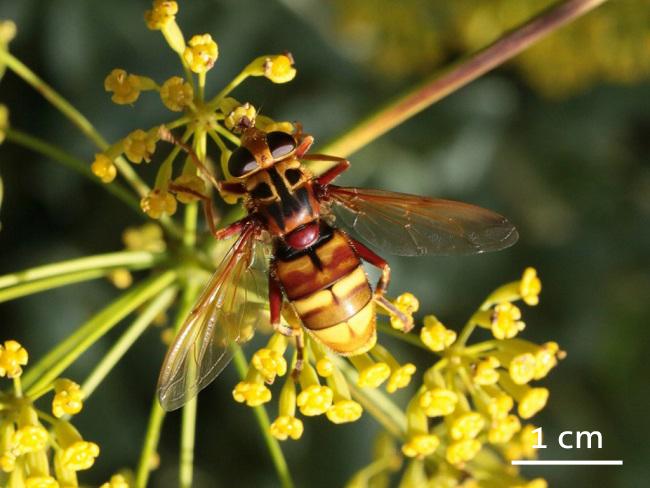 Question #1/4 Image À quelle espèce appartient cet insecte ? Utilise la clé de détermination pour réussir à le déterminer. Les Oxycères (Oxycera) La Milésie frelon (Milesia crabroniformis) La Volucelle vide (Volucella inanis) L'Eristale des fleurs (Myathropa florea) Question suivante