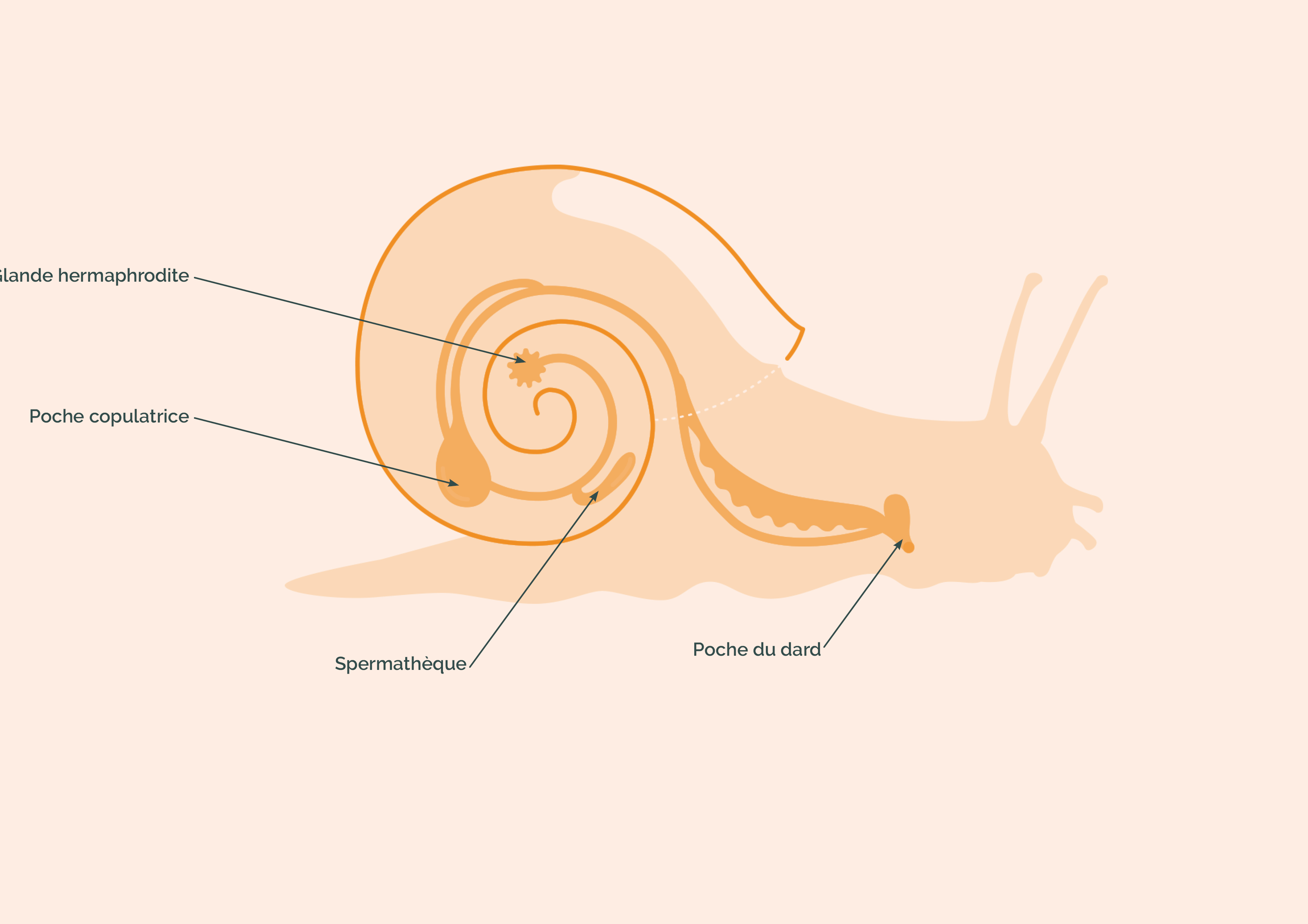 Pour les escargots, le printemps est la saison des amours et lorsque deux individus de la même espèce se rencontrent, ils commencent par s’enlacer : ce sont les préludes. A côté de la tête, les escargots ont une poche musculaire contenant un dard. Pendant les préludes, cette poche s’ouvre et éjecte le dard qui va aller se planter entre la tête et la coquille du partenaire. Le fait d'être piqués par ce dard va stimuler les escargots qui pourront ensuite copuler.